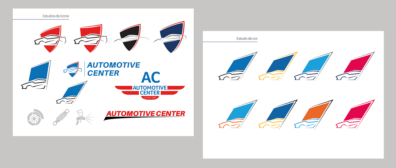 Para melhor simbolizar o serviço, pensamos na junção de alguns elementos chaves, oficina, carro e peças, o conceito para estes elementos é o tipo de serviço fornecido, o cliente trás o carro na oficina com danos que precisam ser reparados depois do serviço ele é entregue em perfeito estado, seguindo a linha de raciocínio do Slogan “Seu carro novo de novo” desenhamos diversos símbolos até chegarmos na ideia que melhor transmita esse conceito.